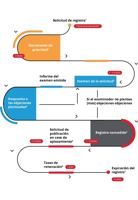- Una vez registrado, el diseño se publica y se considerará registrado a partir de su fecha de presentación.